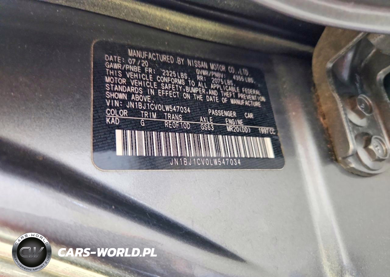 Copart Nr: C-47722606 VIN: JN1BJ1CV0LW547034 Port: Elizabeth, NJ