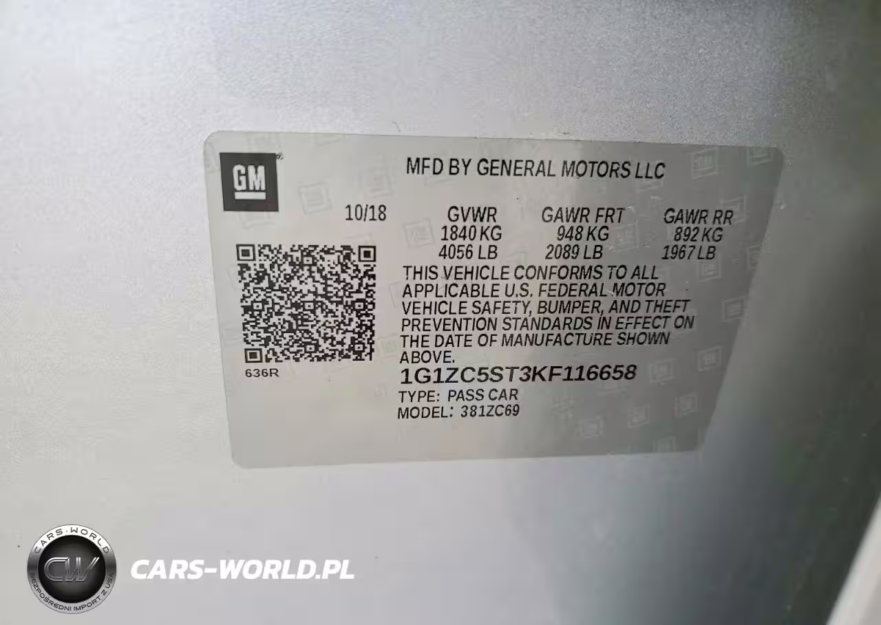 Copart Nr: C-47723326 VIN: 1G1ZC5ST3KF116658 Port: Houston, TX