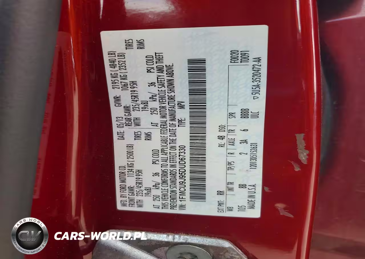 Copart Nr: C-47726816 VIN: 1FMCU9J95DUD67330 Port: Indianapolis, IN