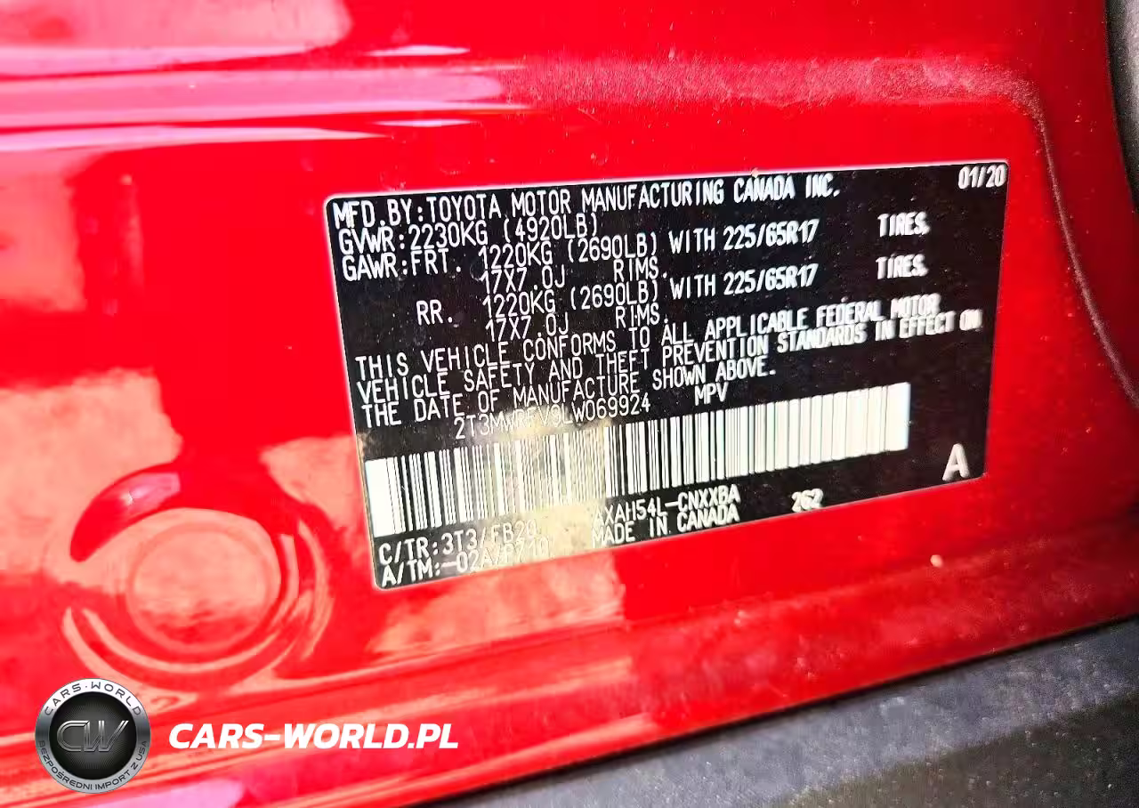 Copart Nr: C-47729086 VIN: 2T3MWRFV9LW069924 Port: Los Angeles, CA
