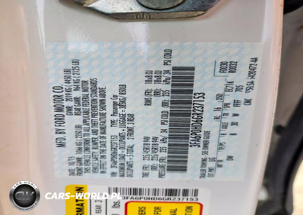 Copart Nr: C-47757886 VIN: 3FA6P0HD6GR237153 Port: Elizabeth, NJ