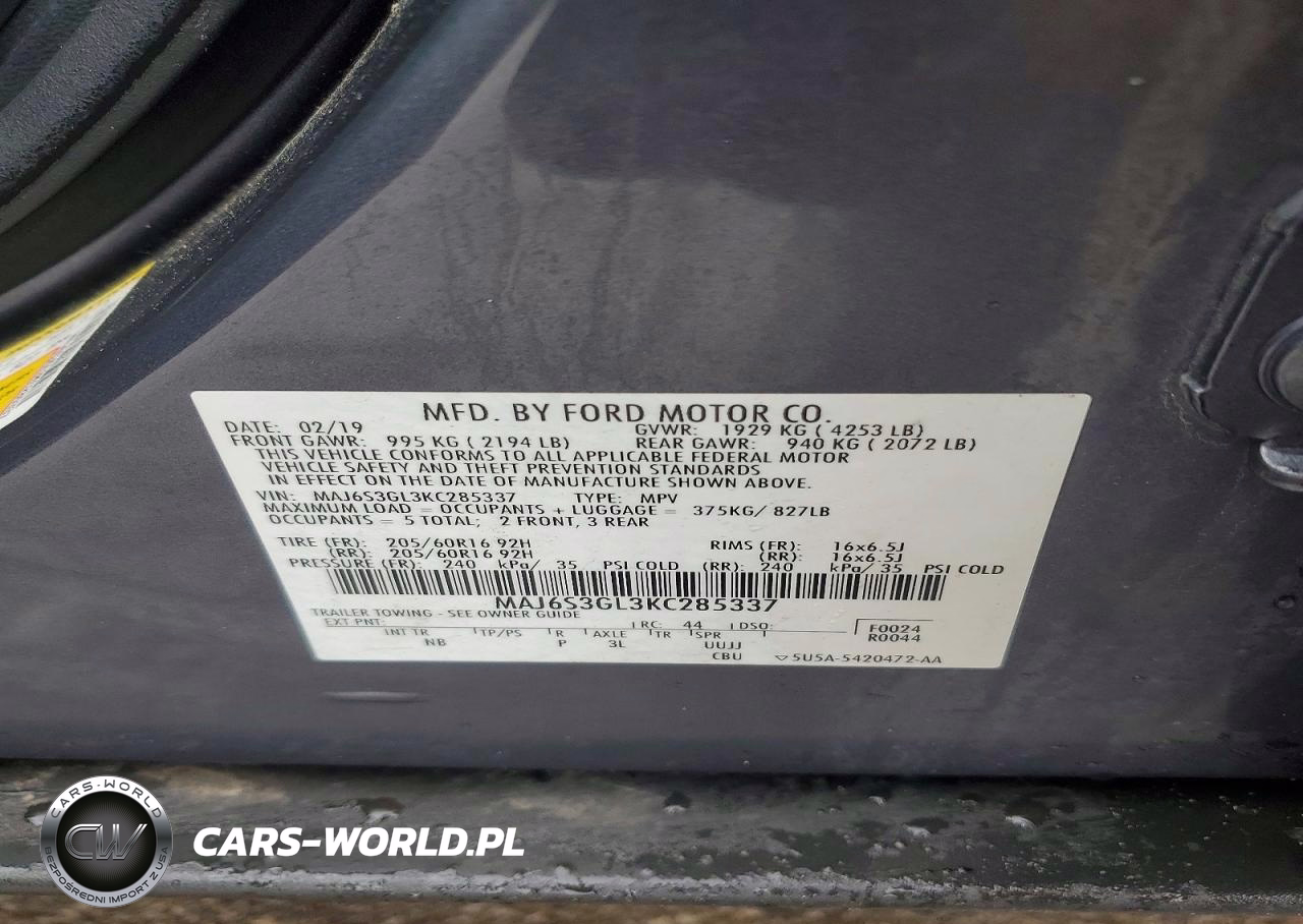 Copart Nr: C-47774336 VIN: MAJ6S3GL3KC285337 Port: Elizabeth, NJ