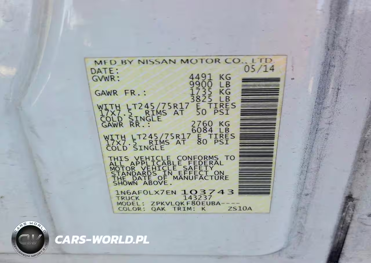 Copart Nr: C-47779596 VIN: 1N6AF0LX7EN103743 Port: Savannah, GA
