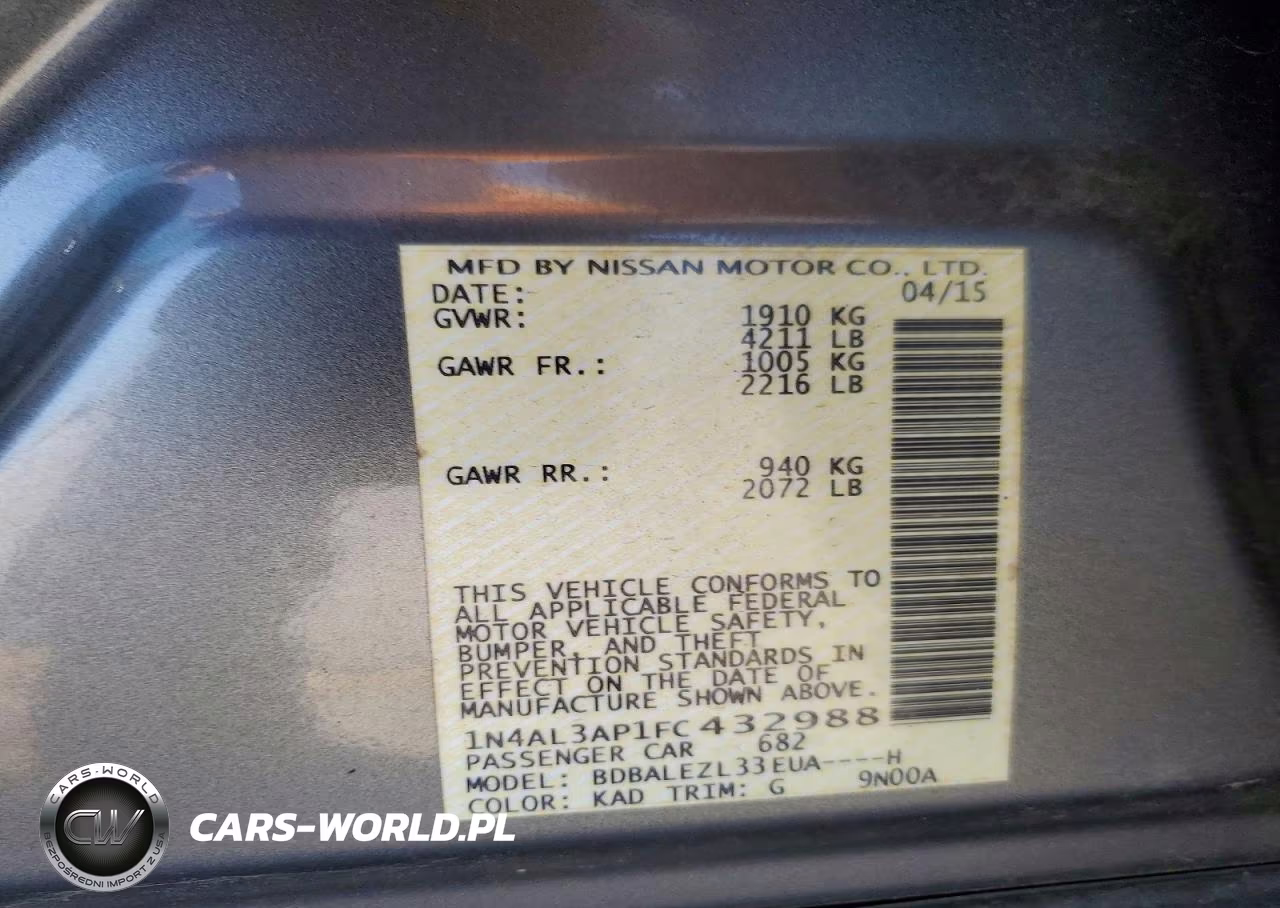 Copart Nr: C-47781726 VIN: 1N4AL3AP1FC432988 Port: Savannah, GA