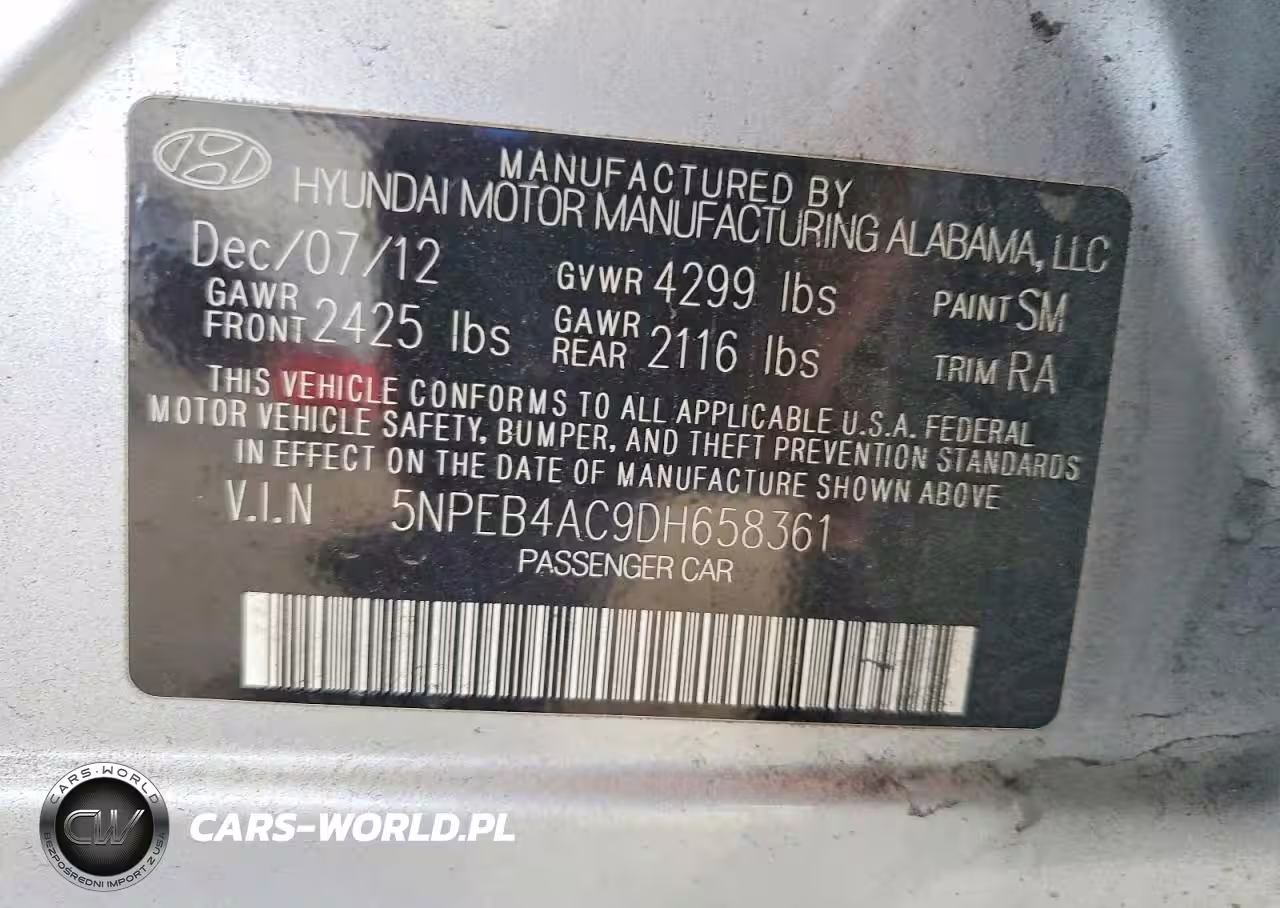 Copart Nr: C-47793126 VIN: 5NPEB4AC9DH658361 Port: Los Angeles, CA