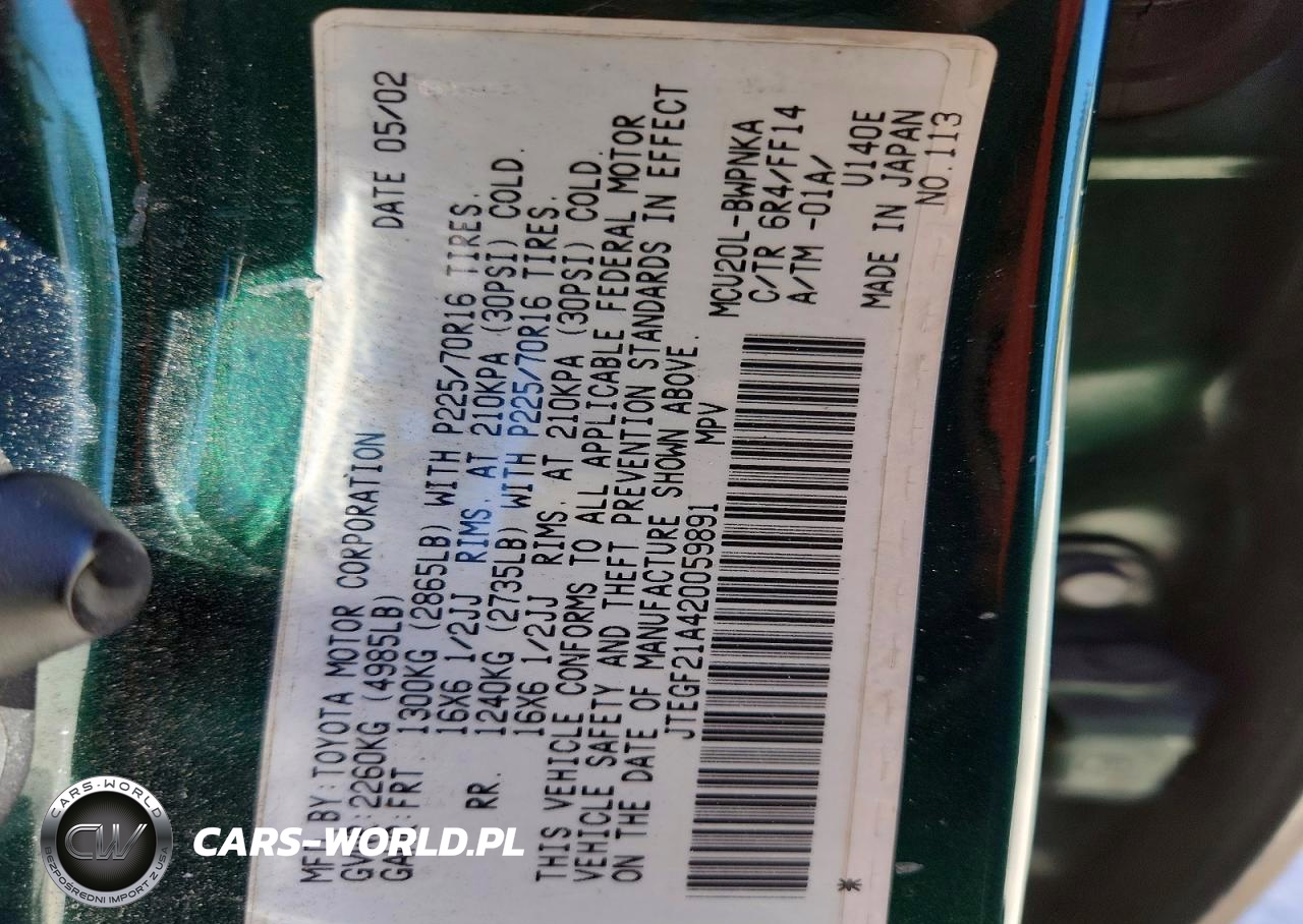 Copart Nr: C-47793266 VIN: JTEGF21A420059891 Port: Savannah, GA
