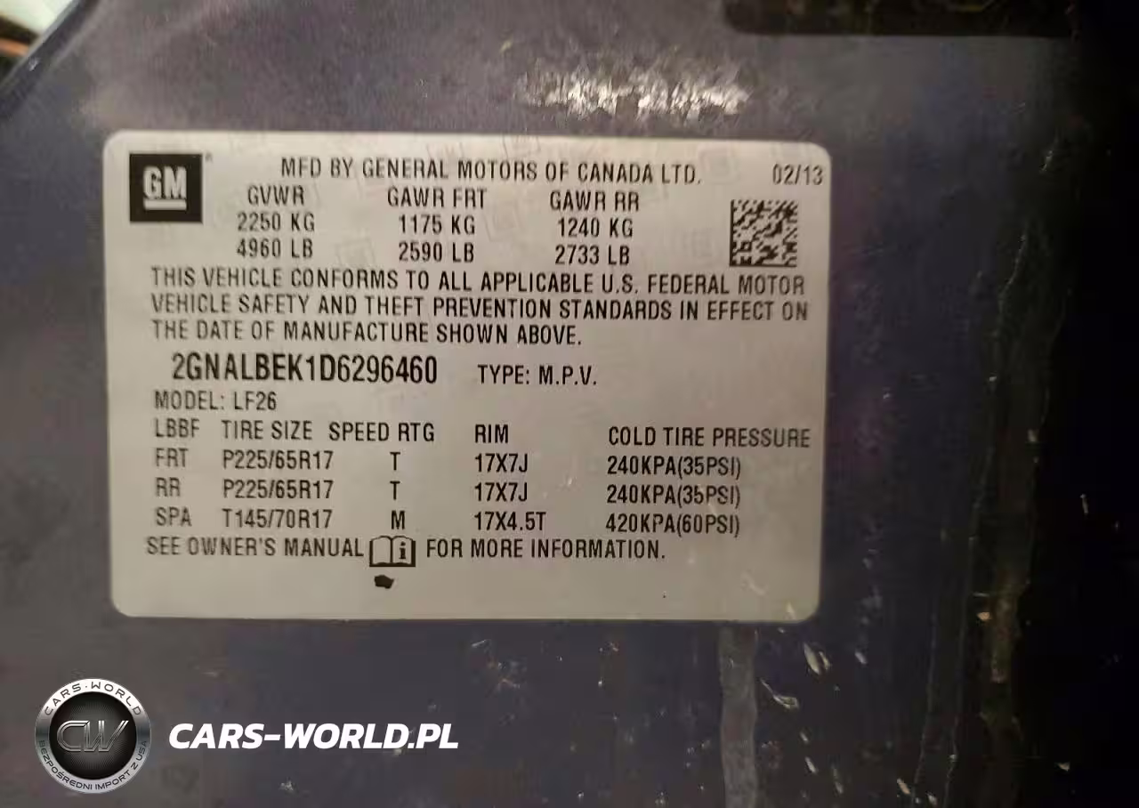 Copart Nr: C-47793666 VIN: 2GNALBEK1D6296460 Port: Indianapolis, IN