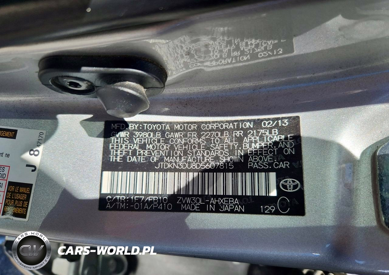 Copart Nr: C-47801636 VIN: JTDKN3DU8D5607815 Port: Los Angeles, CA