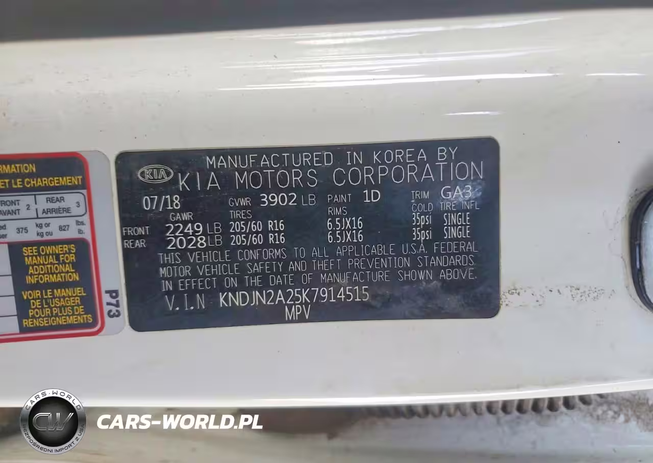 Copart Nr: C-47804026 VIN: KNDJN2A25K7914515 Port: Los Angeles, CA