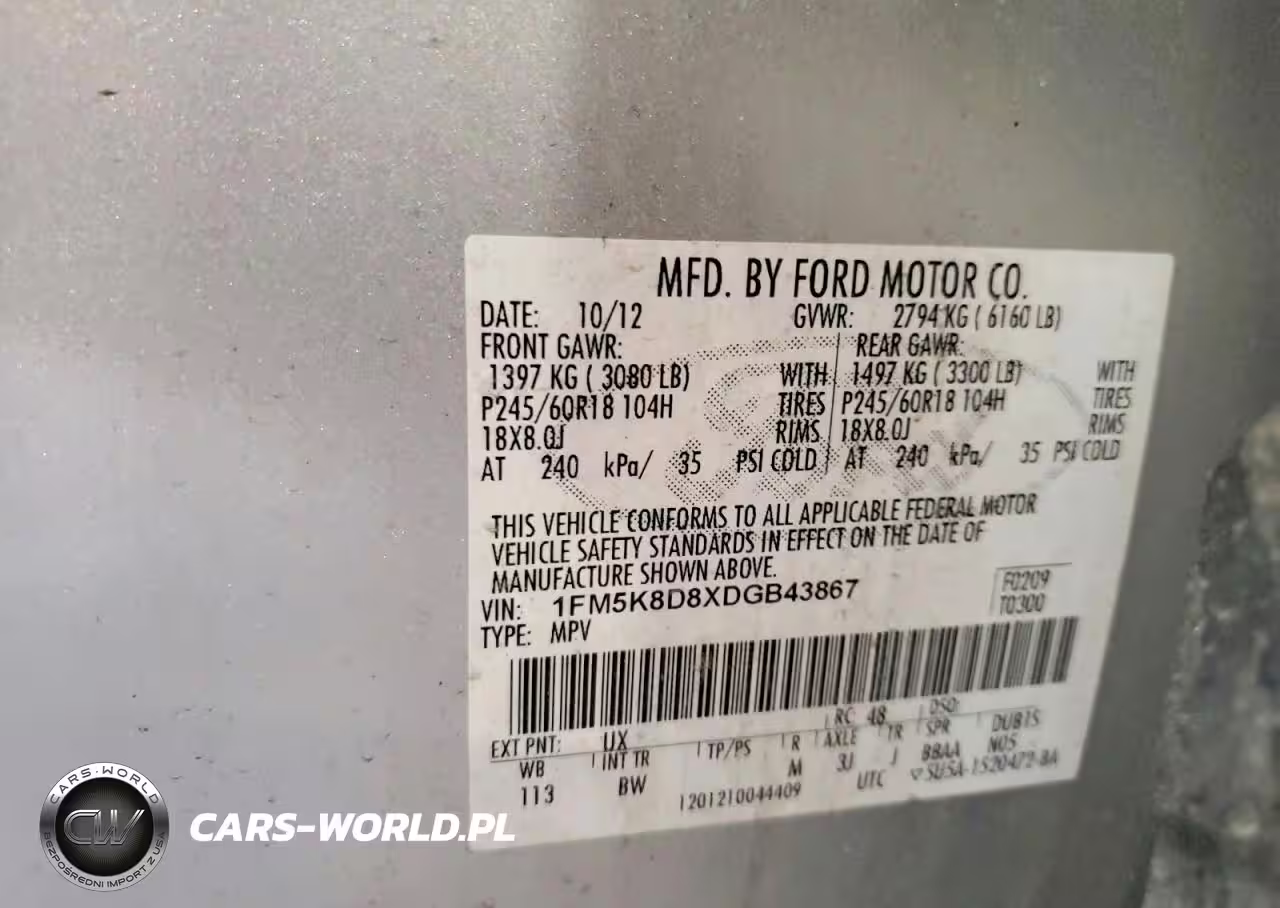 Copart Nr: C-47809126 VIN: 1FM5K8D8XDGB43867 Port: Elizabeth, NJ