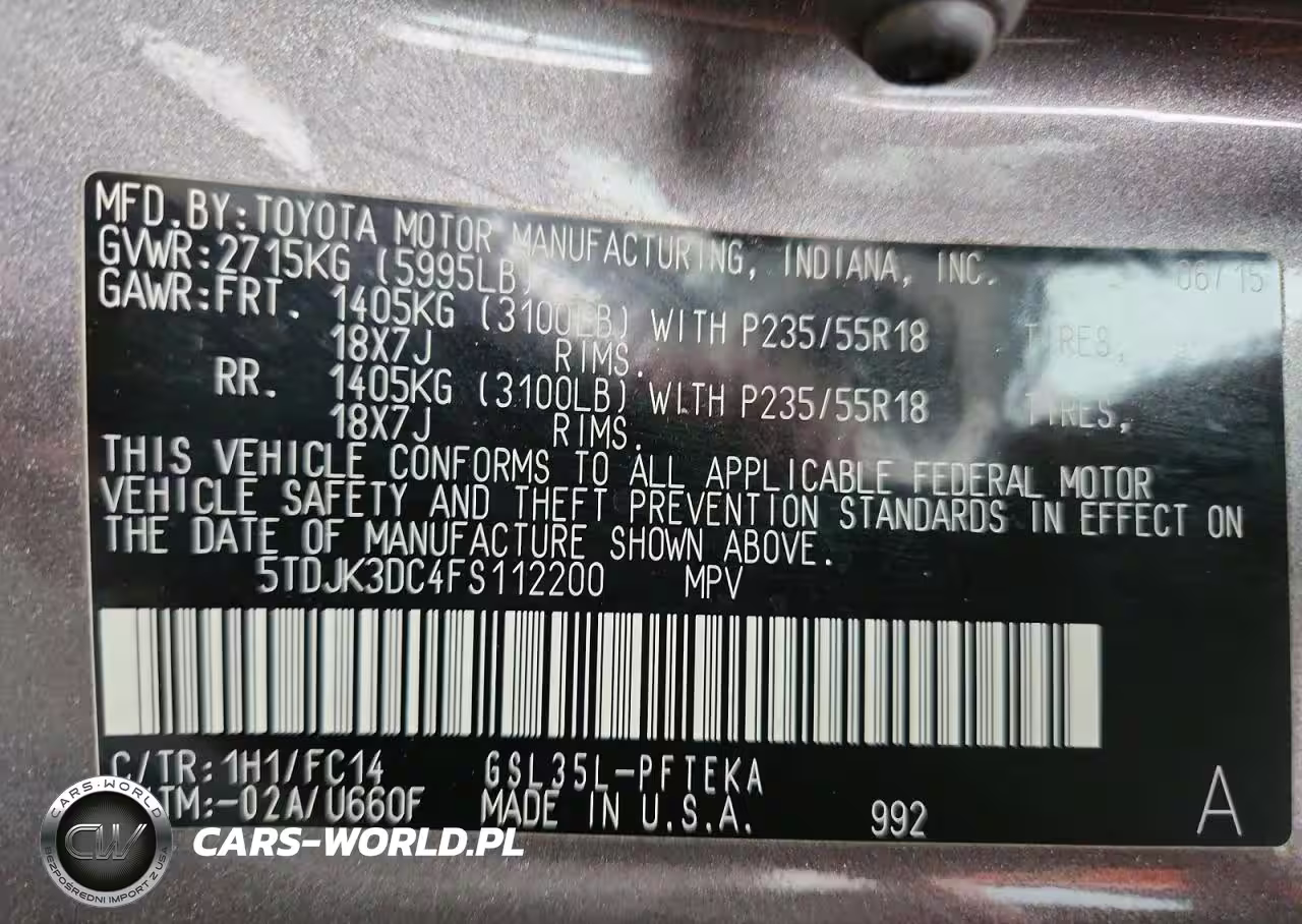 Copart Nr: C-47811556 VIN: 5TDJK3DC4FS112200 Port: Indianapolis, IN