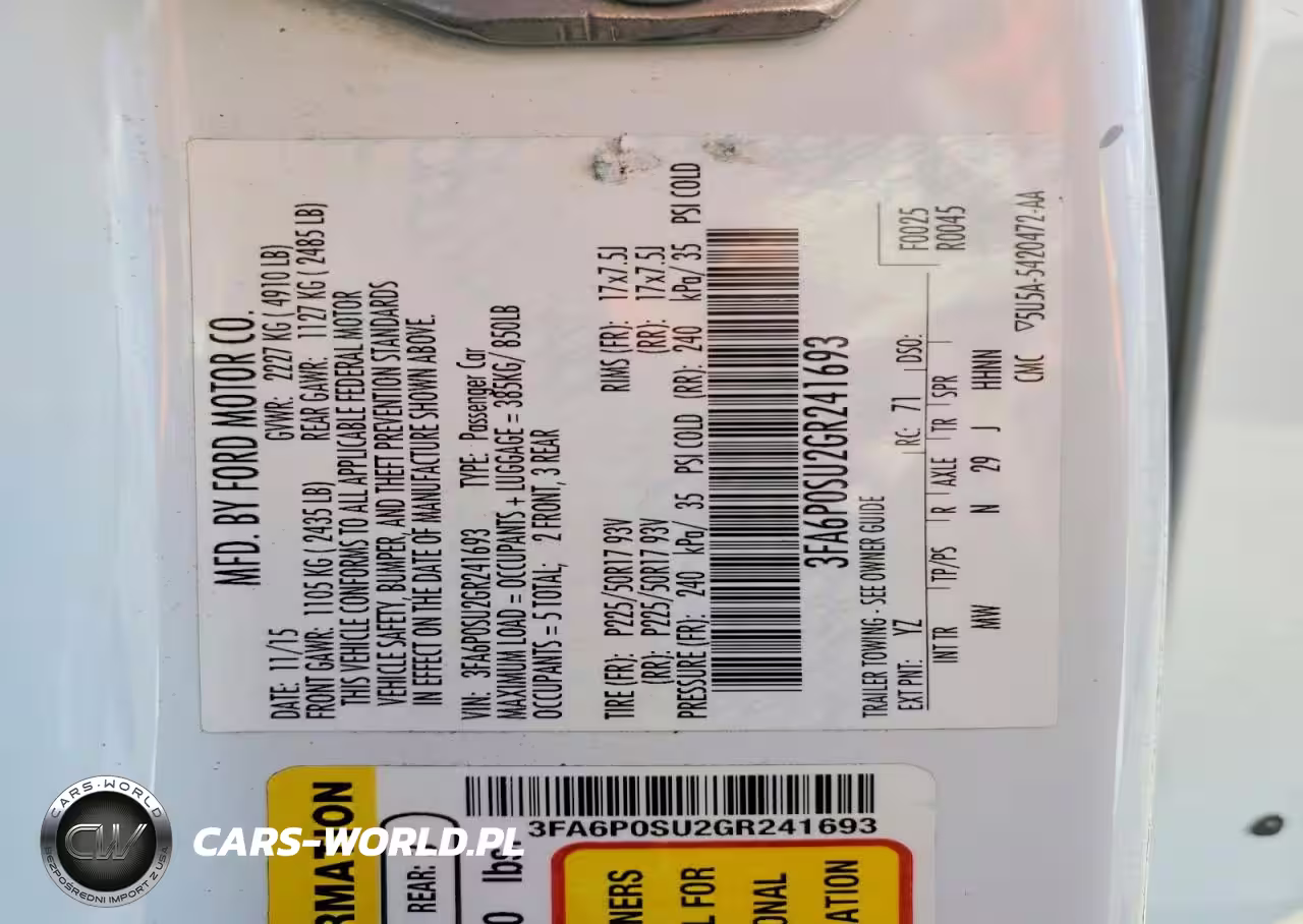 Copart Nr: C-47833296 VIN: 3FA6P0SU2GR241693 Port: Los Angeles, CA