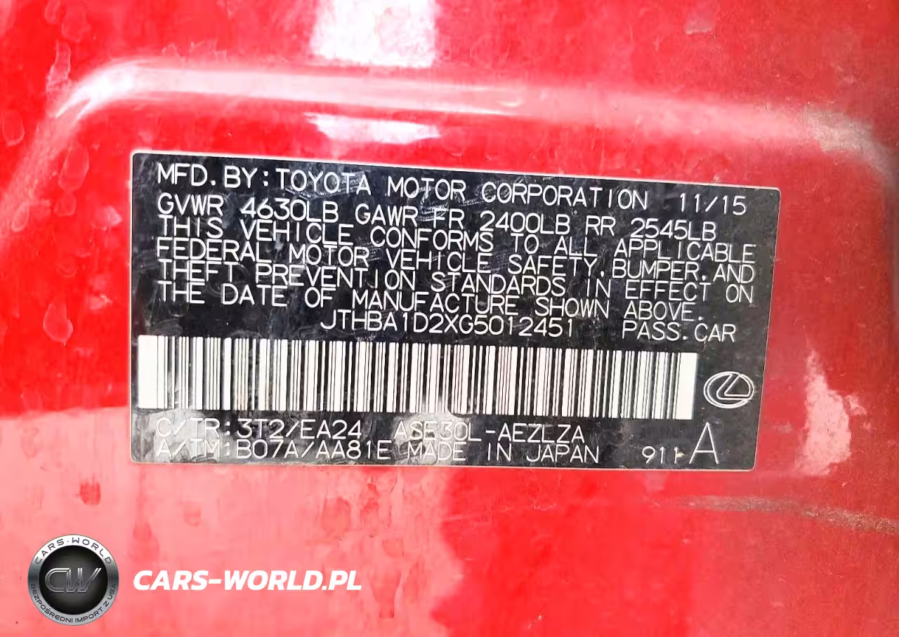 Copart Nr: C-47834046 VIN: JTHBA1D2XG5012451 Port: Los Angeles, CA