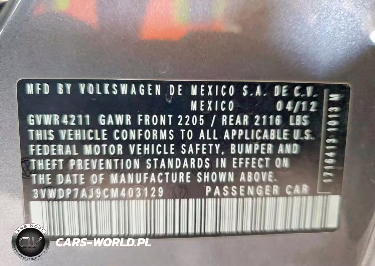 Copart Nr: C-47834956 VIN: 3VWDP7AJ9CM403129 Port: Los Angeles, CA
