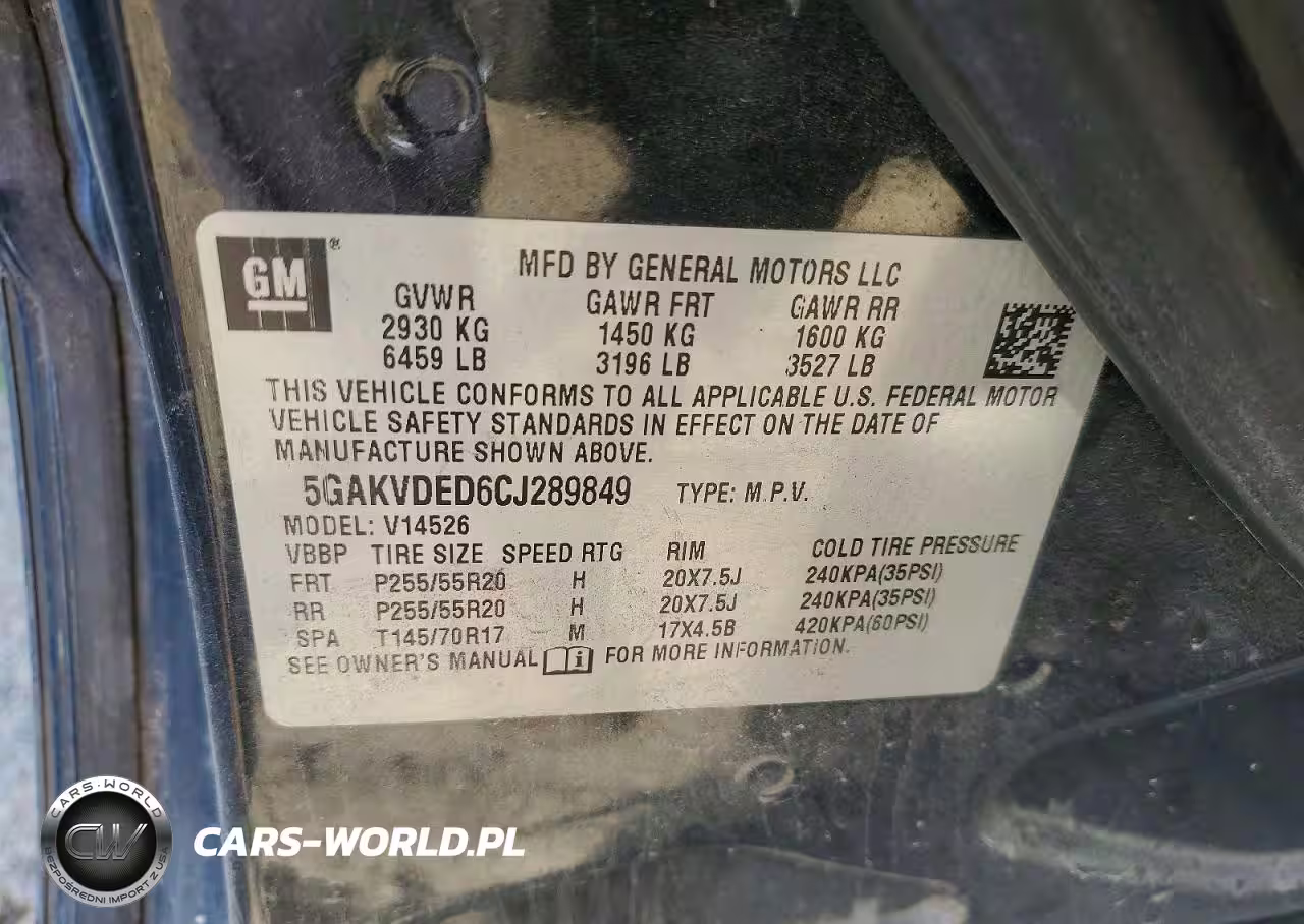 Copart Nr: C-47837316 VIN: 5GAKVDED6CJ289849 Port: Elizabeth, NJ