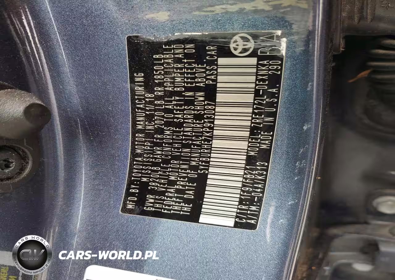 Copart Nr: C-47861056 VIN: 5YFBURHE7KP913087 Port: Savannah, GA