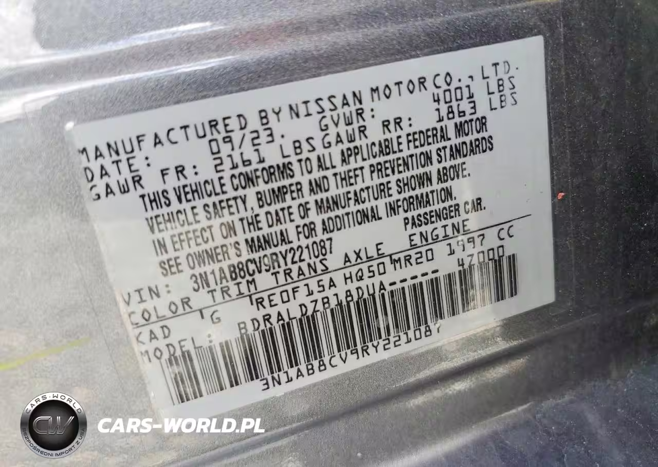 Copart Nr: C-47880916 VIN: 3N1AB8CV9RY221087 Port: Savannah, GA