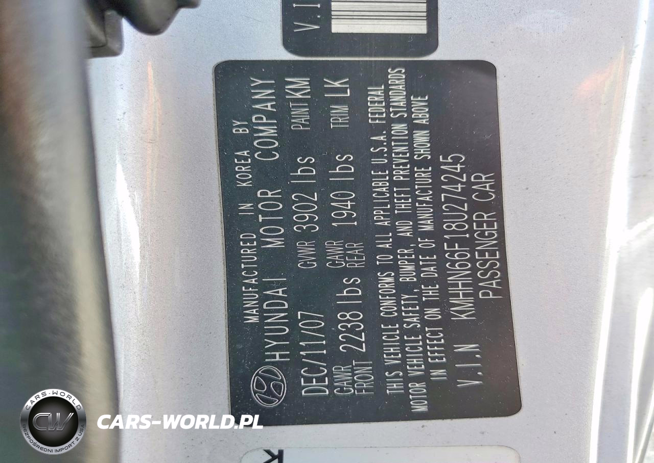 Copart Nr: C-47891536 VIN: KMHHN66F18U274245 Port: Elizabeth, NJ