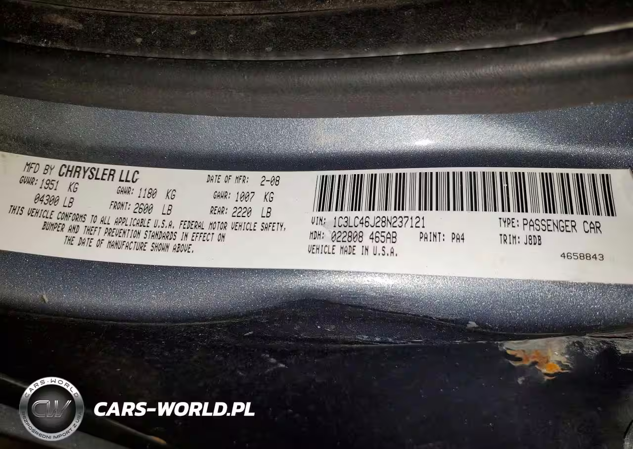 Copart Nr: C-47900316 VIN: 1C3LC46J28N237121 Port: Indianapolis, IN