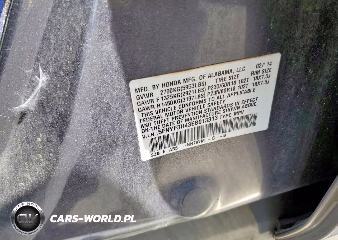 Copart Nr: C-47901806 VIN: 5FNYF3H43EB013313 Port: Savannah, GA