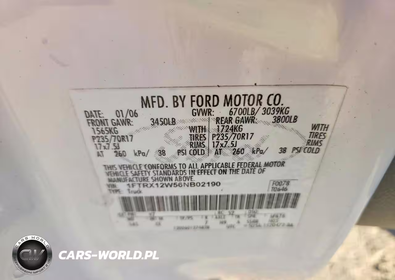 Copart Nr: C-47910426 VIN: 1FTRX12W56NB02190 Port: Houston, TX