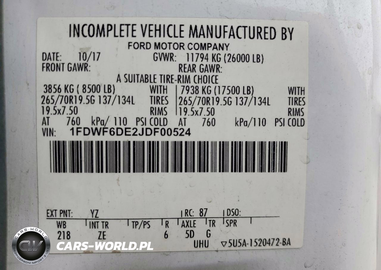 Copart Nr: C-47923096 VIN: 1FDWF6DE2JDF00524 Port: Los Angeles, CA