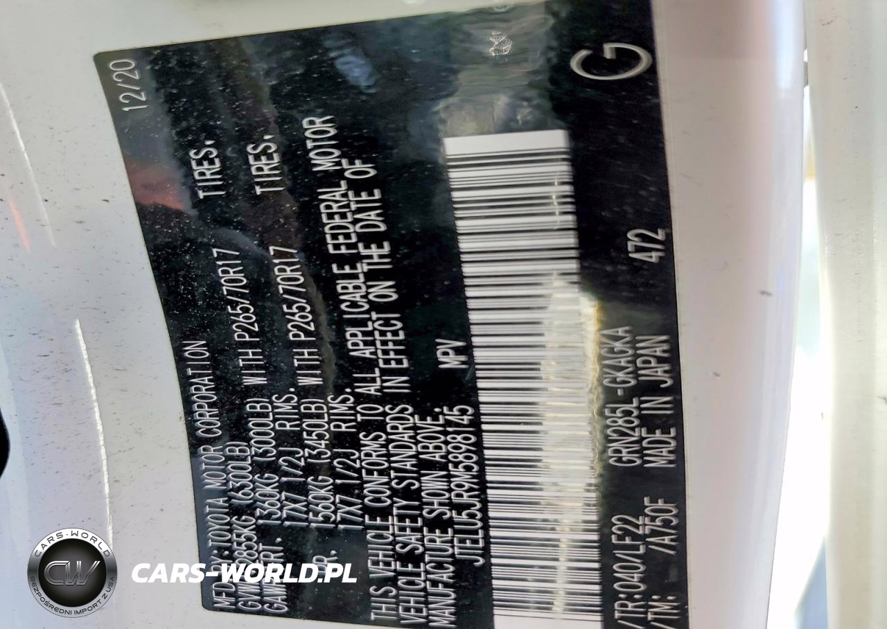 Copart Nr: C-47928376 VIN: JTELU5JR9M5898145 Port: Elizabeth, NJ