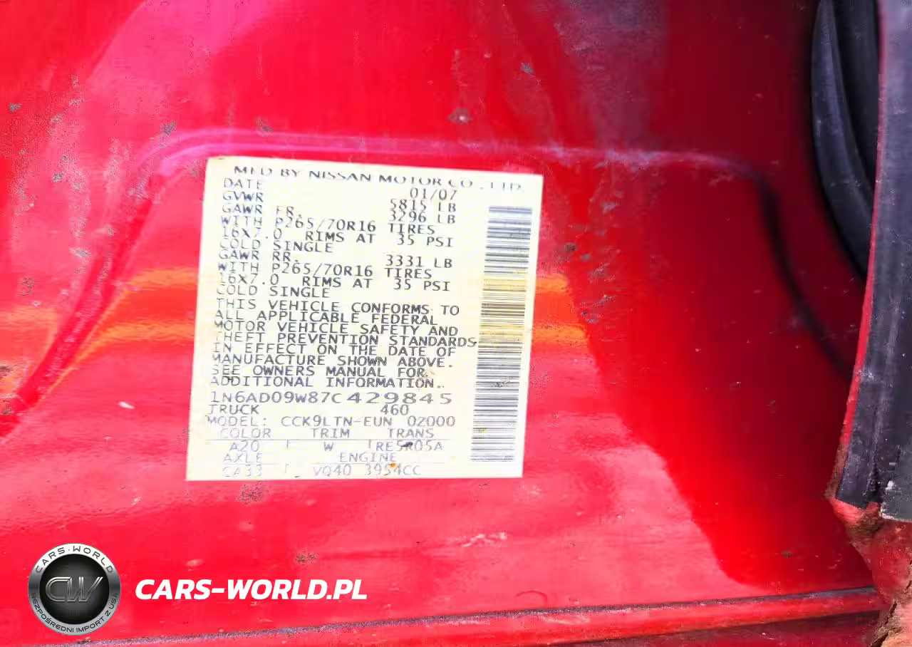 Copart Nr: C-47928576 VIN: 1N6AD09W87C429845 Port: Elizabeth, NJ