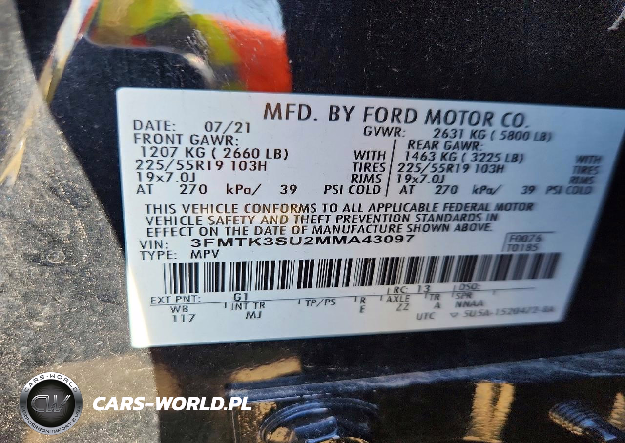Copart Nr: C-47933596 VIN: 3FMTK3SU2MMA43097 Port: Elizabeth, NJ