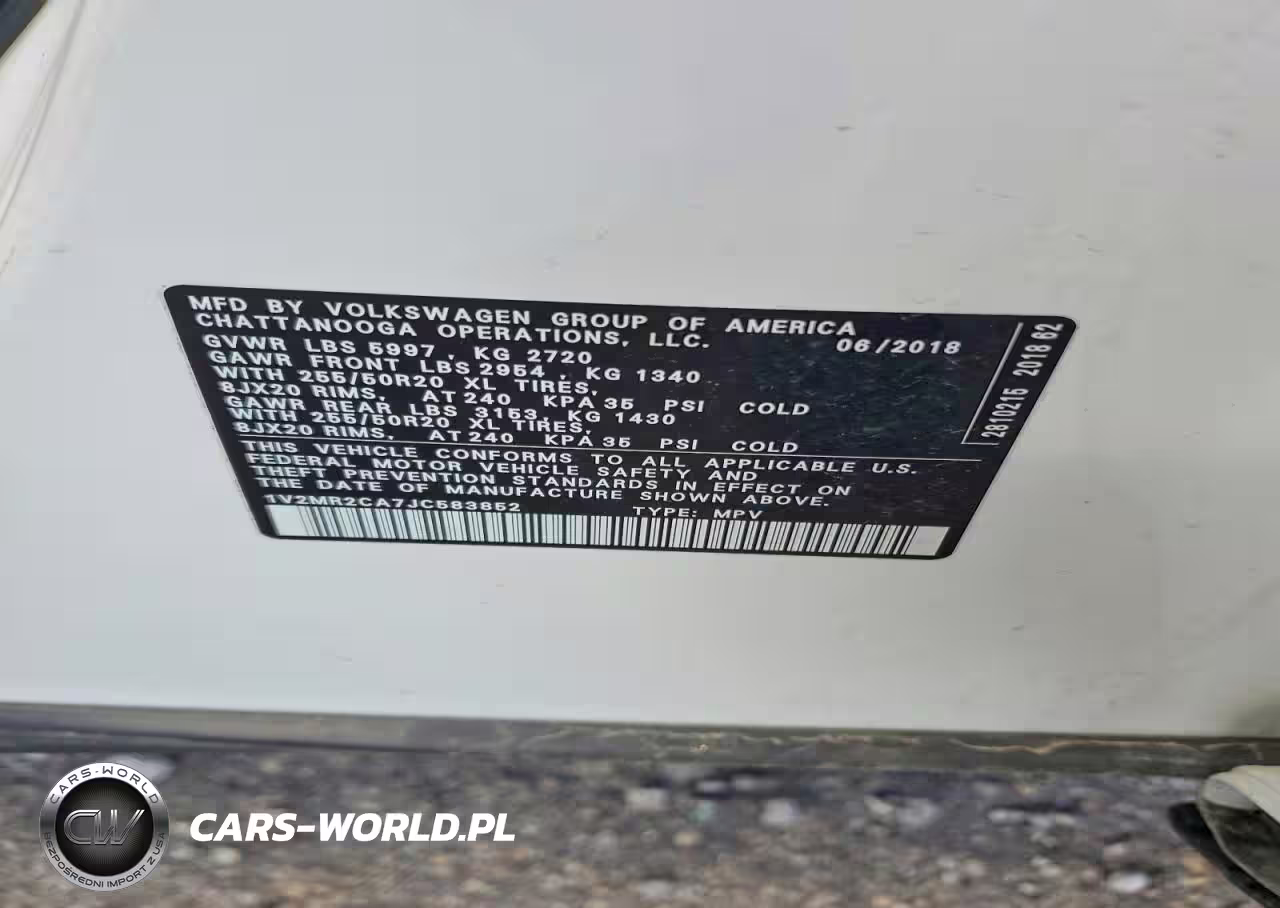 Copart Nr: C-47934376 VIN: 1V2MR2CA7JC583852 Port: Indianapolis, IN
