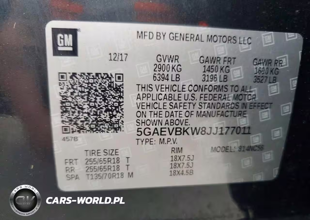 Copart Nr: C-47938976 VIN: 5GAEVBKW8JJ177011 Port: Savannah, GA