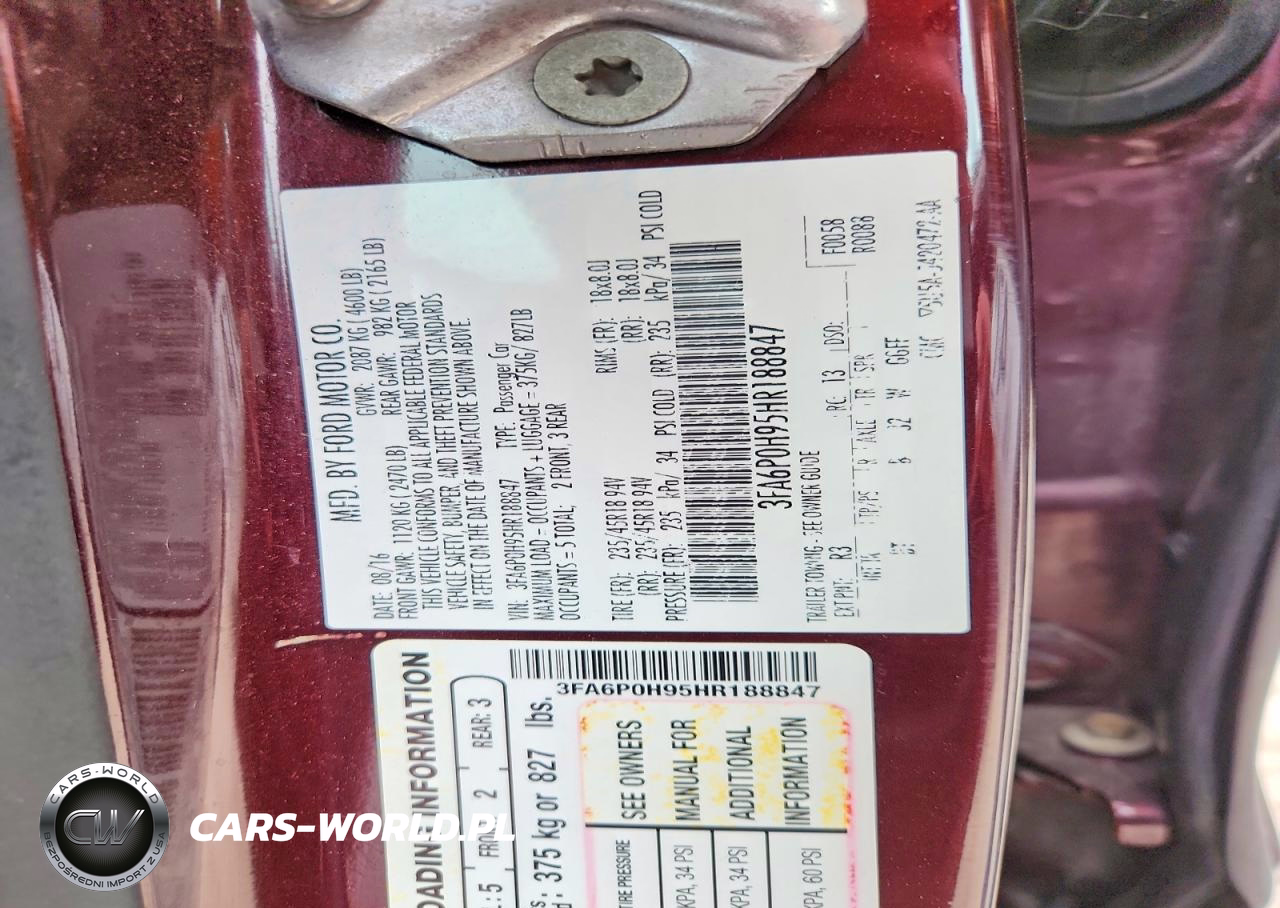 Copart Nr: C-47952976 VIN: 3FA6P0H95HR188847 Port: Elizabeth, NJ