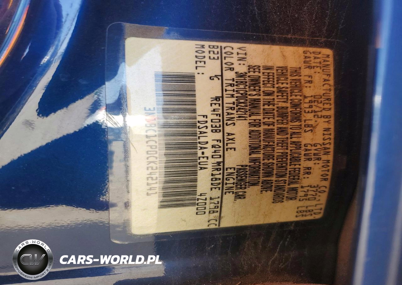 Copart Nr: C-47954746 VIN: 3N1BC1CP0CK242141 Port: Elizabeth, NJ