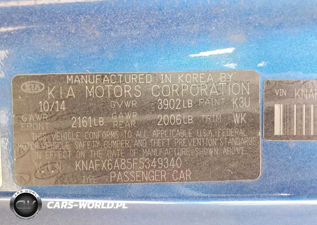 Copart Nr: C-47960076 VIN: KNAFX6A85F5349340 Port: Savannah, GA