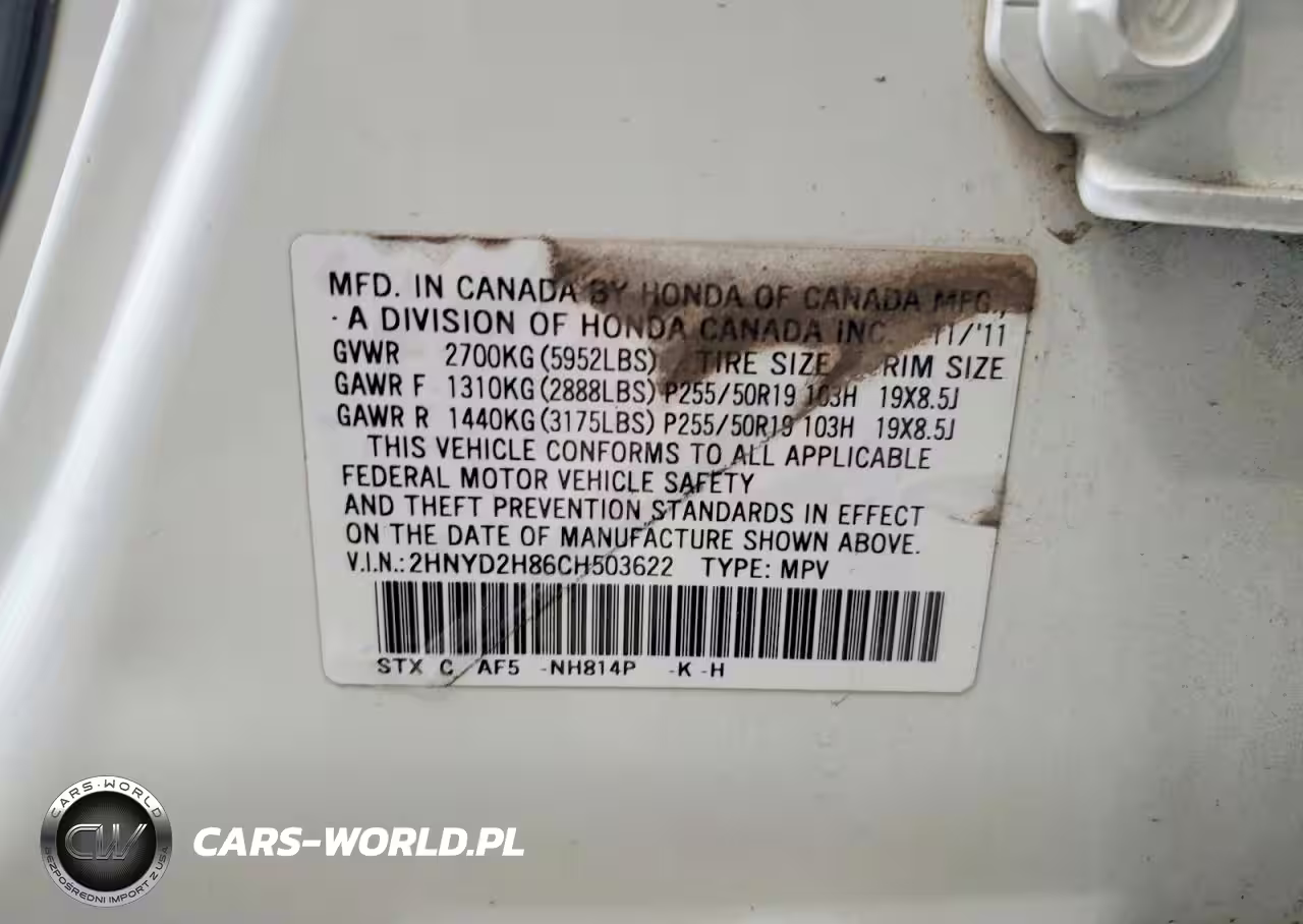 Copart Nr: C-47961066 VIN: 2HNYD2H86CH503622 Port: Houston, TX