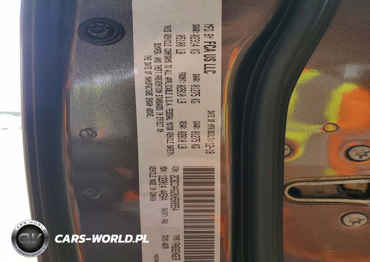 Copart Nr: C-47962736 VIN: 2C3CCAAG2KH568954 Port: Los Angeles, CA