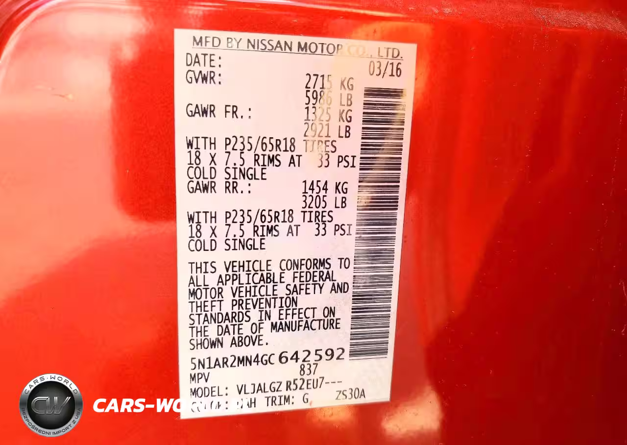 Copart Nr: C-47967496 VIN: 5N1AR2MN4GC642592 Port: Savannah, GA