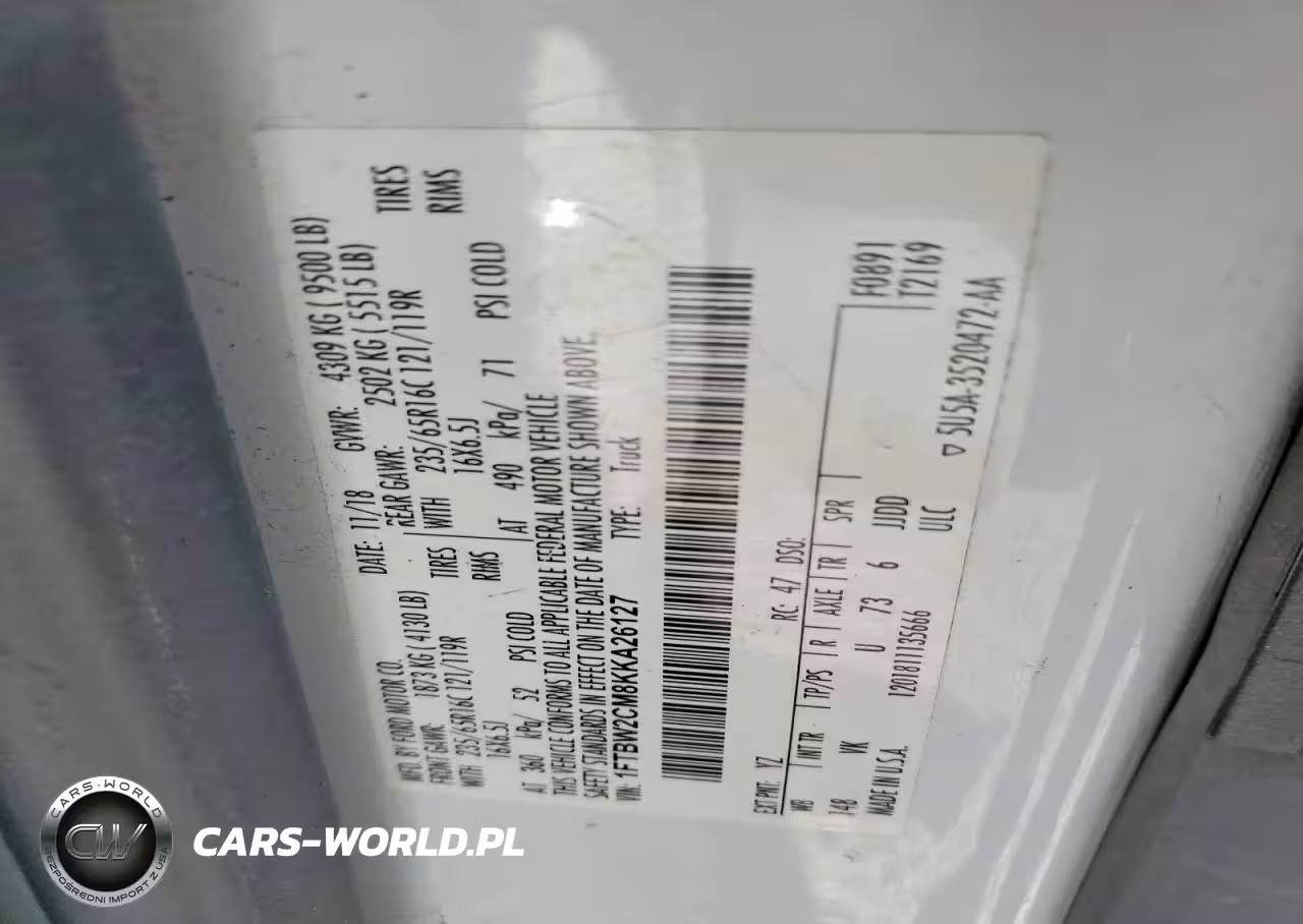 Copart Nr: C-47980216 VIN: 1FTBW2CM8KKA26127 Port: Savannah, GA