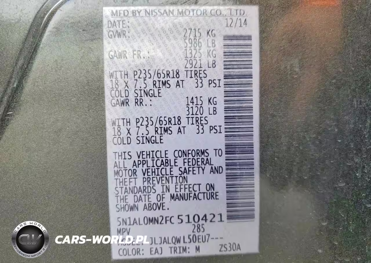 Copart Nr: C-47981196 VIN: 5N1AL0MN2FC510421 Port: Savannah, GA