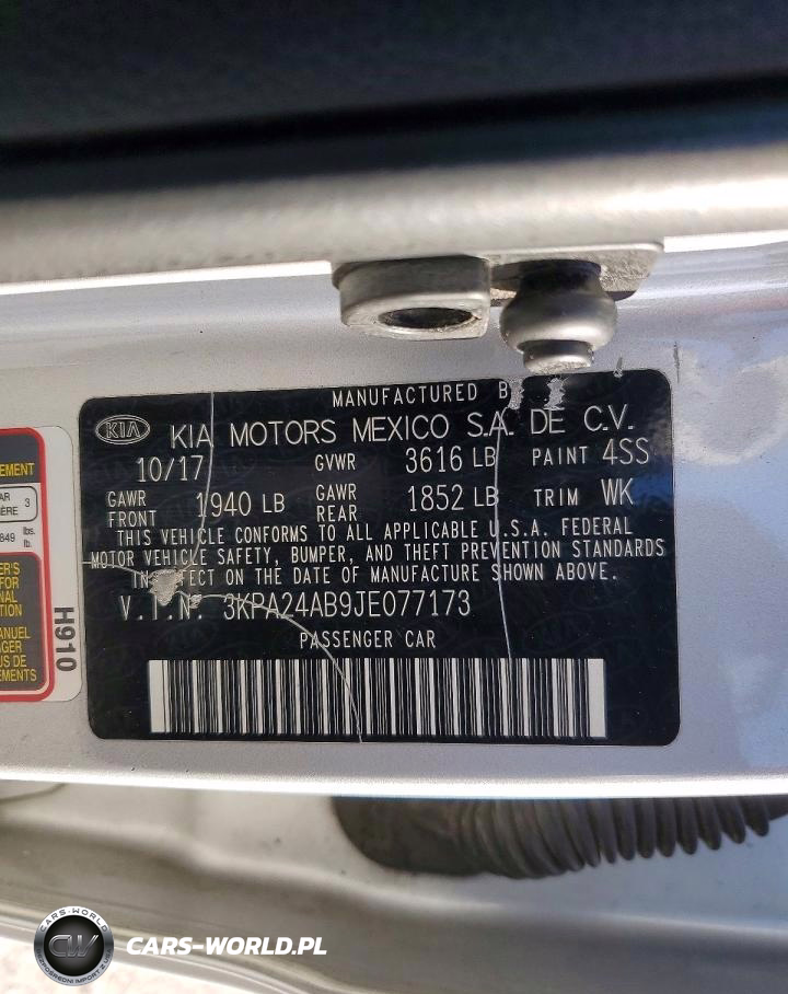 Copart Nr: C-47981556 VIN: 3KPA24AB9JE077173 Port: Savannah, GA