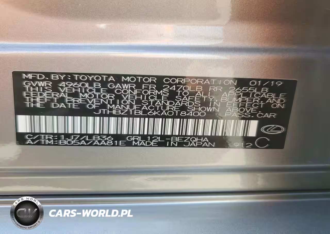 Copart Nr: C-47984906 VIN: JTHBZ1BL6KA018400 Port: Savannah, GA