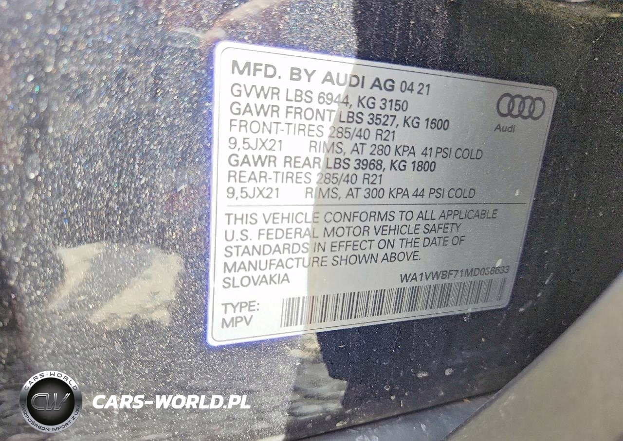 Copart Nr: C-47990276 VIN: WA1VWBF71MD036633 Port: Indianapolis, IN
