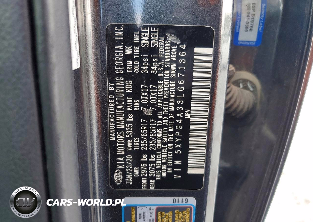 Copart Nr: C-48058936 VIN: 5XYPG4A33LG671364 Port: Houston, TX