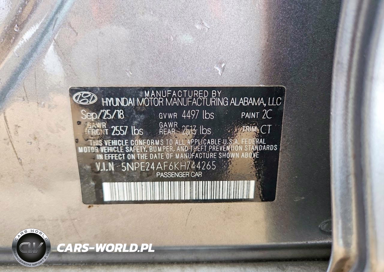 Copart Nr: C-48066546 VIN: 5NPE24AF6KH744265 Port: Savannah, GA