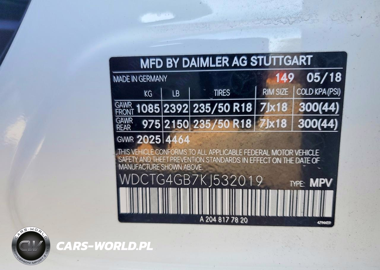 Copart Nr: C-48069306 VIN: WDCTG4GB7KJ532019 Port: Elizabeth, NJ