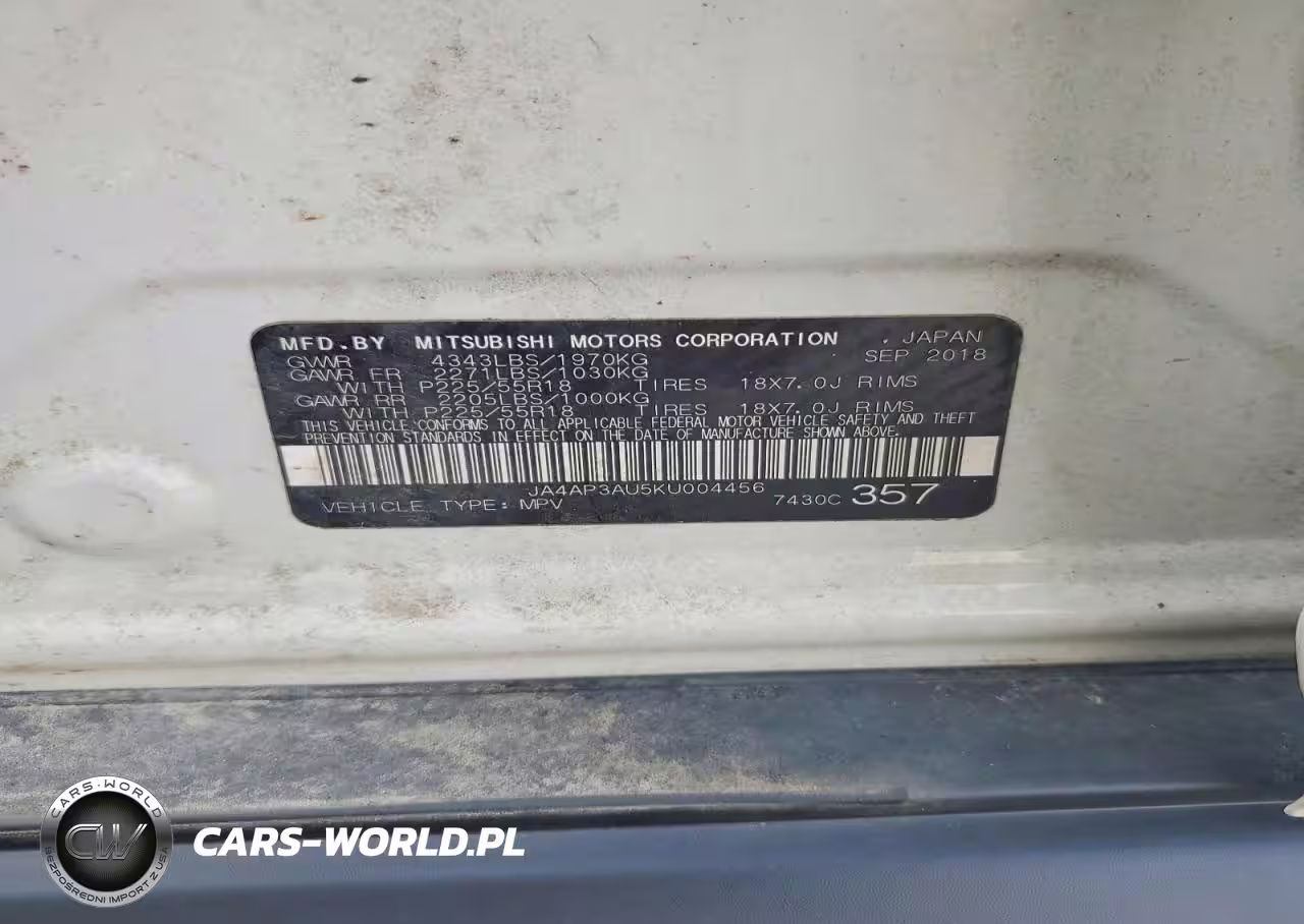 Copart Nr: C-48073196 VIN: JA4AP3AU5KU004456 Port: Indianapolis, IN
