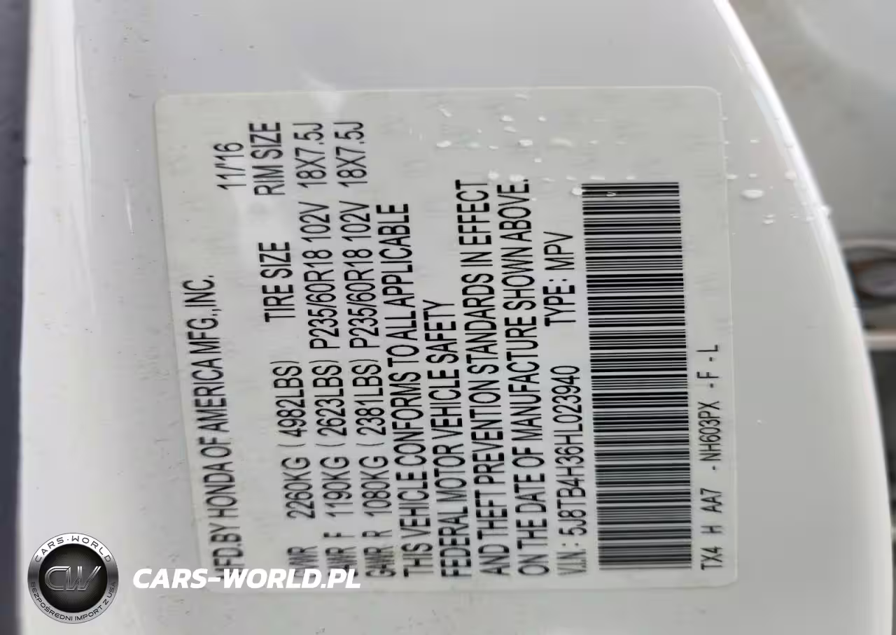 Copart Nr: C-48078876 VIN: 5J8TB4H36HL023940 Port: Elizabeth, NJ