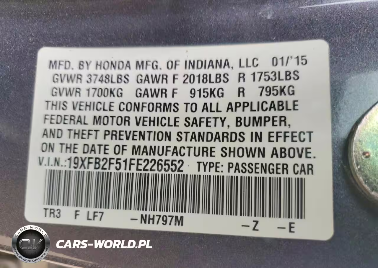 Copart Nr: C-48096706 VIN: 19XFB2F51FE226552 Port: Los Angeles, CA