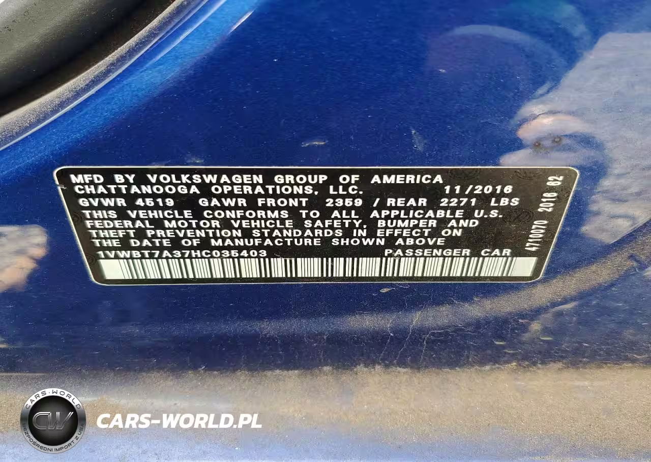 Copart Nr: C-48110836 VIN: 1VWBT7A37HC035403 Port: Savannah, GA