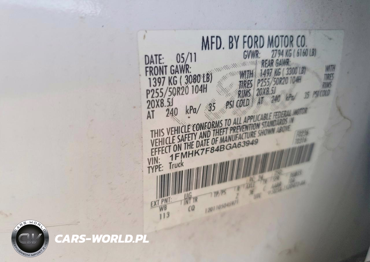 Copart Nr: C-48124016 VIN: 1FMHK7F84BGA63949 Port: Indianapolis, IN